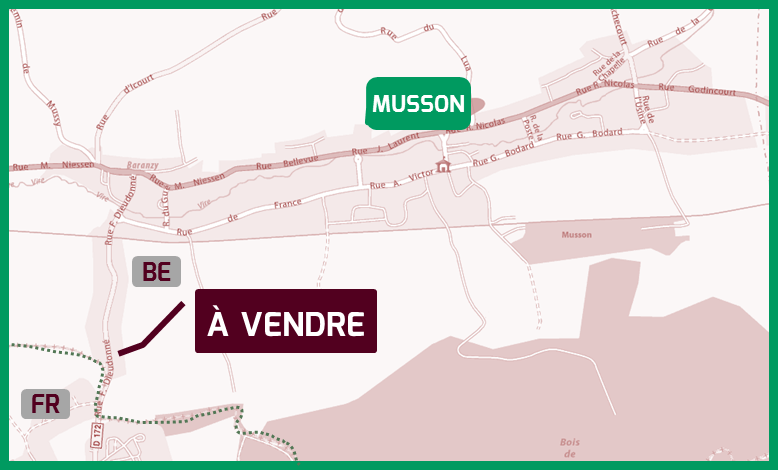 Situation Ce terrain est bien situé dans Musson, à la sortie du village en direction la France. Musson est accessible par la N88(Axe Virton, BE / Differange, LU)
